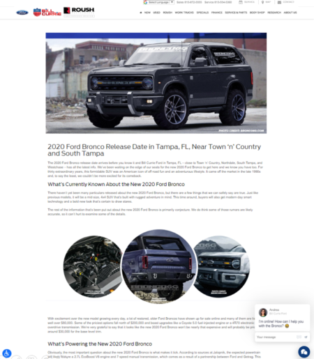 What started out as a local SEO content page about the 2020 Ford Bronco release for our client Bill Currie Ford ended up ranking on a national level. When searching for “new 2020 Ford Bronco,” the page we produced for this client landed near the top of the national organic search results.
